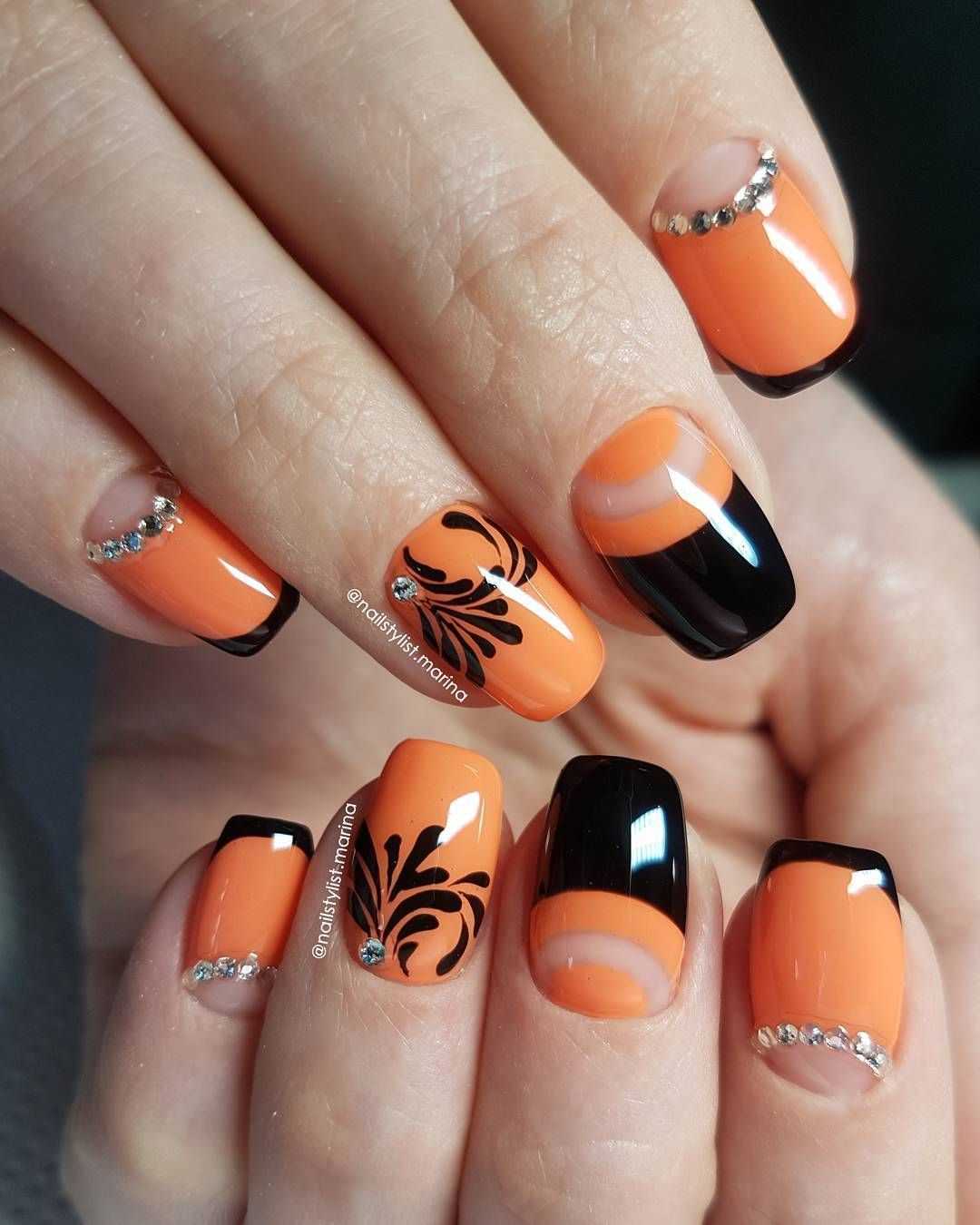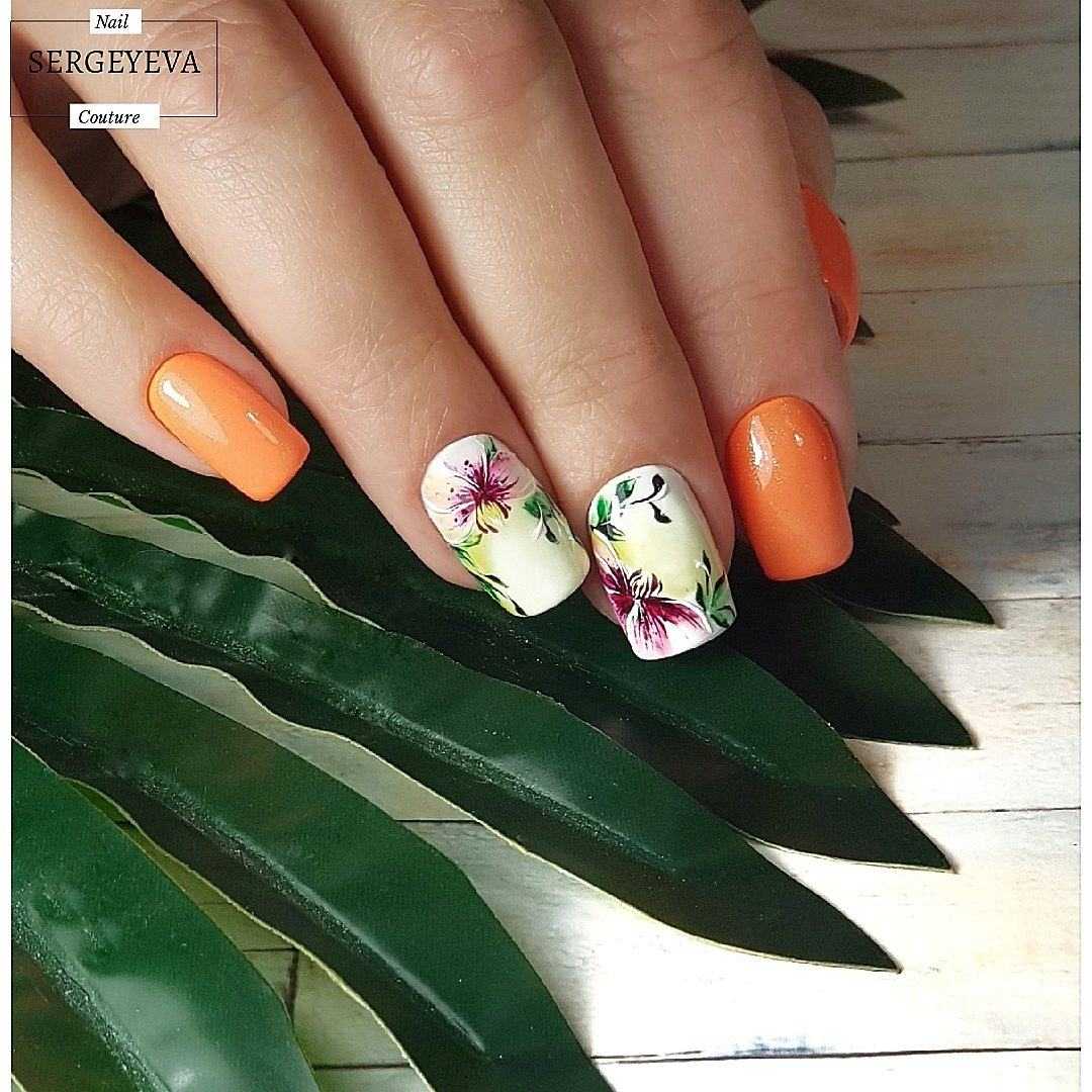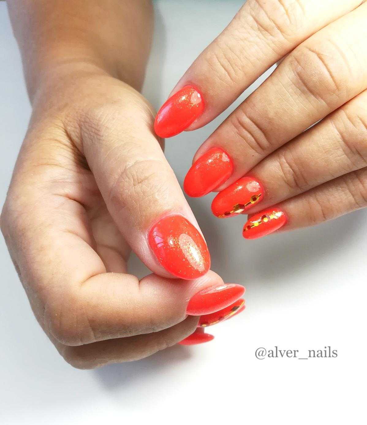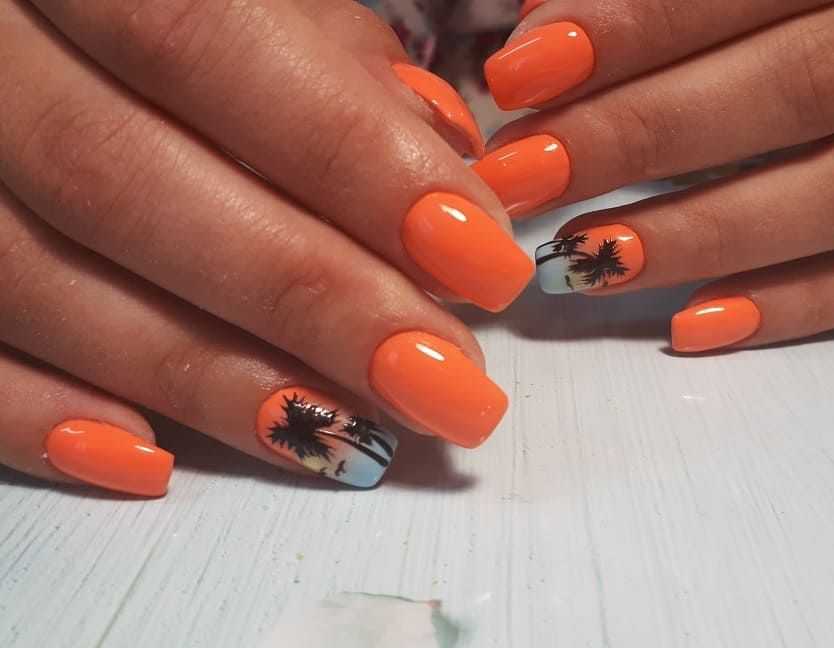 Обладательницам и любительницам коротких ногтевых пластин, придётся по вкусу маникюр в оранжевом цвете. С таким покрытием ноготки будут смотреться объёмнее и насыщенней