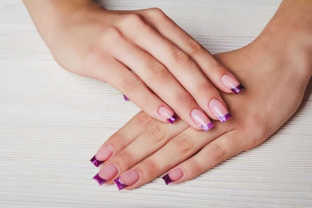 Для выполнения маникюра на коротких ногтях рекомендуется использовать светлые оттенки фиолетового: лавандовый, сиреневый и другие. Они смотрятся на ногтях гораздо мягче и естественнее, чем темно-фиолетовый цвет.