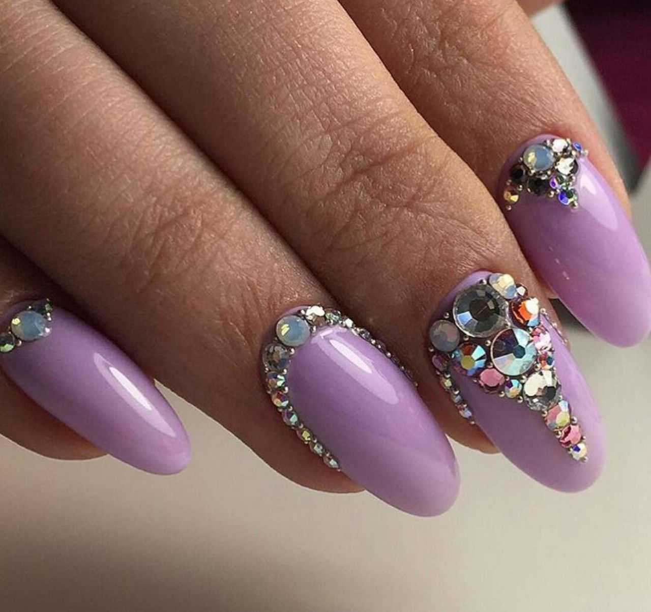 Для сиреневого маникюра ногтей весны-лета и осени-зимы 2020 года, с его лучшими образцами идей дизайна и форм, на короткие и длинные ногти с сиреневым цветом для любого исполнения и с любым их наполнением (цветным декором и стразами), нет тех осязаемых границ, которые бы смогли сдержать мысль, идеи и фантазии его создателей.