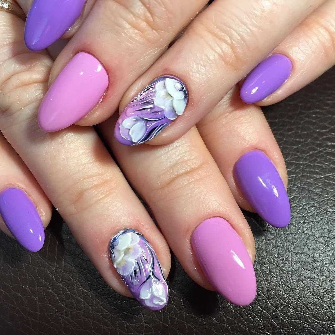 Ногти с сиреневыми тонами, расцветками и оттенками