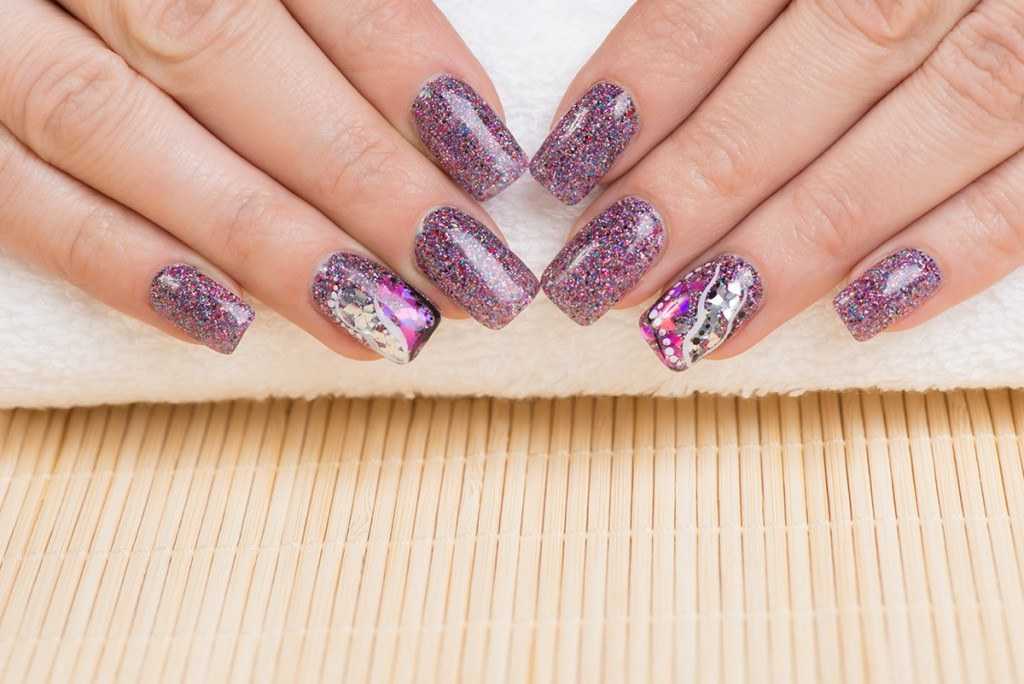 Модный маникюр с блестками на короткие и длинные ногти