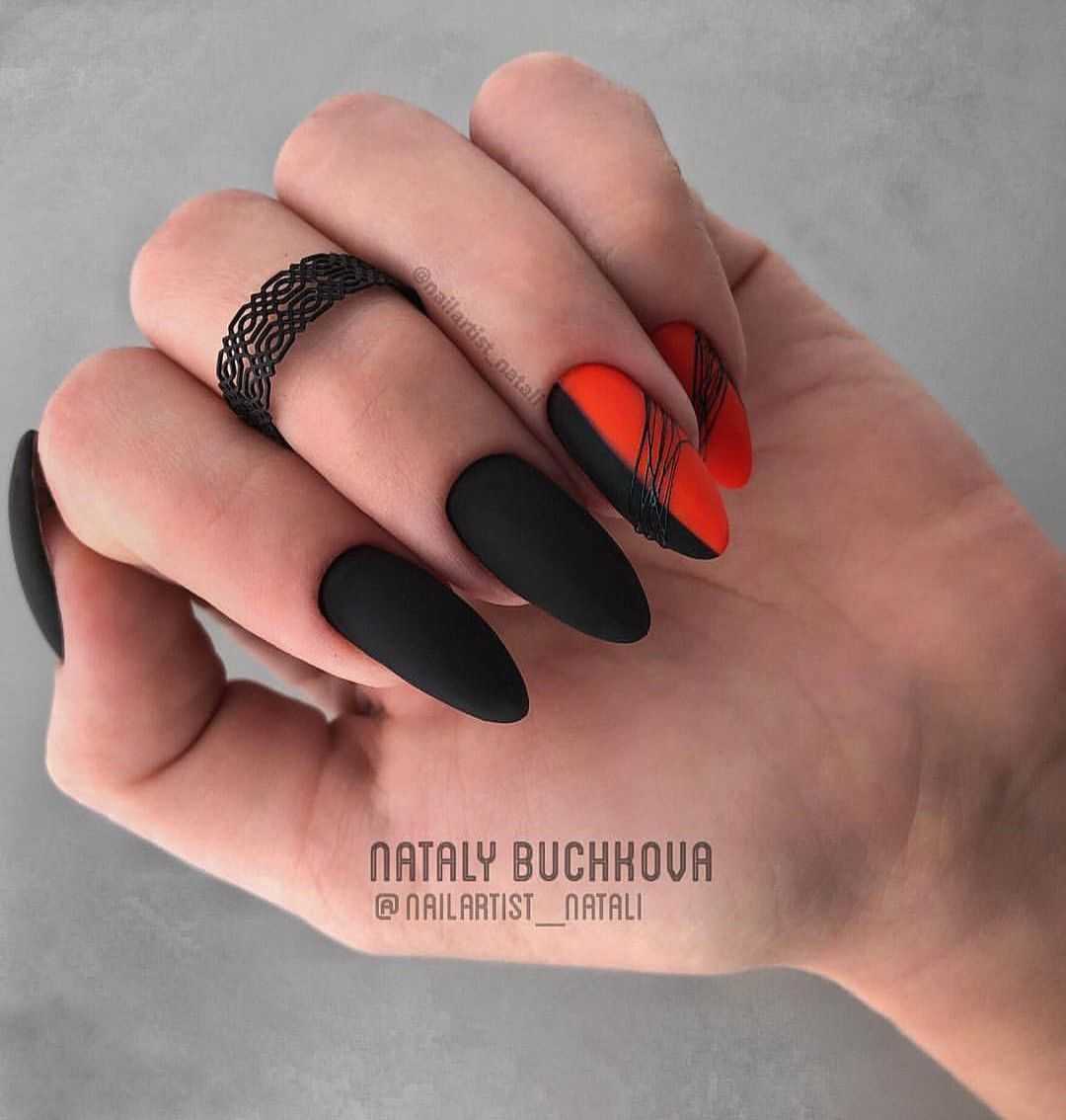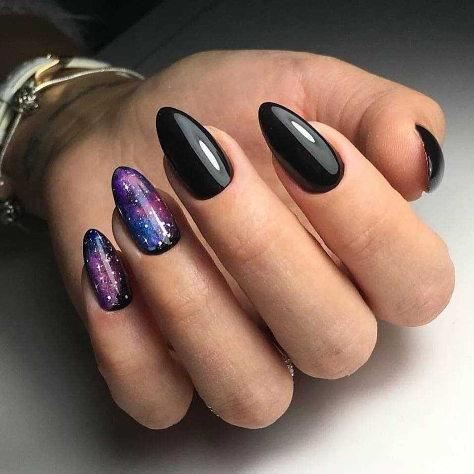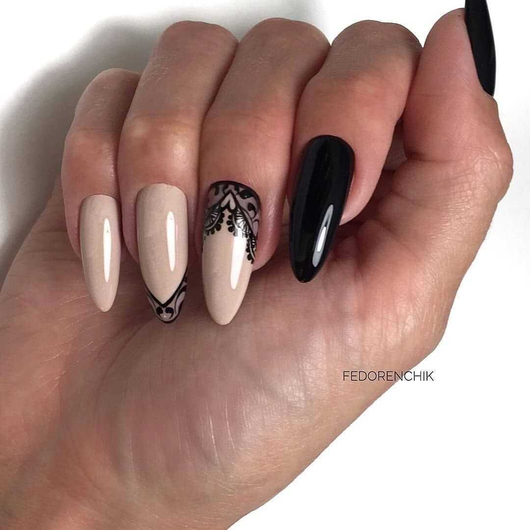 Темный дизайн миндалевидных ногтей 2022-2023 – игра контрастов, изобилие идей