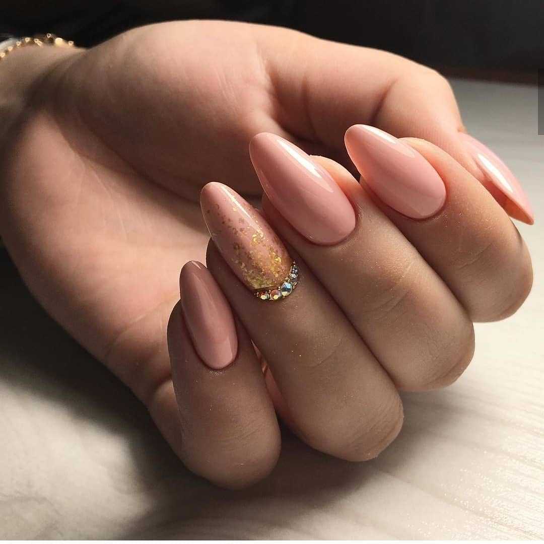 Нежный маникюр на миндальные ногти — нюдовый, бежевый