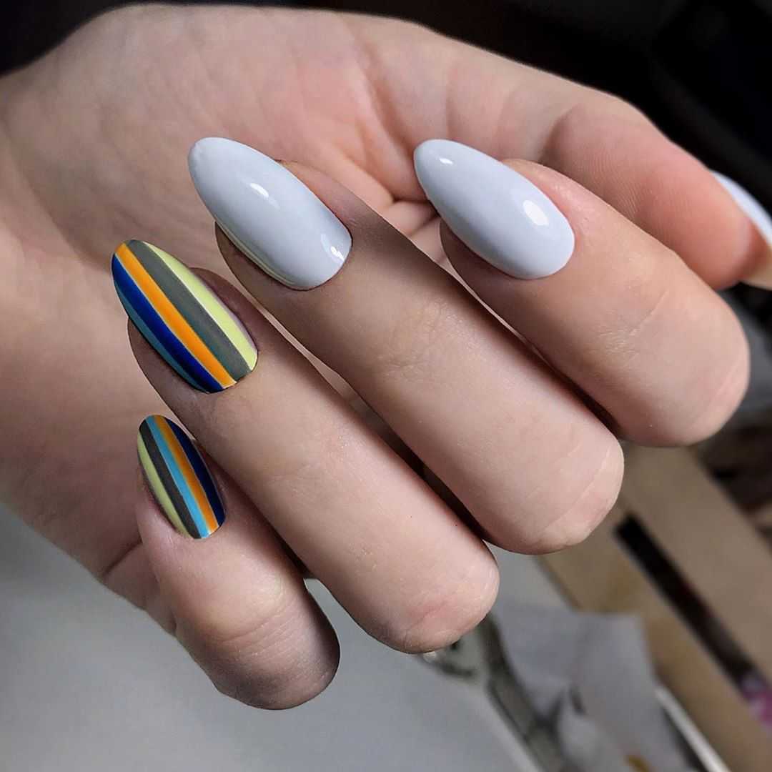 Лето – лучшее время для экспериментов. Некоторые из них будут уместны не только в жаркую погоду, но и в умеренную, характерную для начала осени. Ну а для тех, у кого отпуск в сентябре будет актуален яркий летний маникюр на миндальную форму, который поражает своим разнообразием. Оригинальные сочетания цветов, наивные картинки, омбре, радуга, совершенно яркие цвета и немыслимые оттенки. Мы собрали наиболее интересные варианты в подборку.