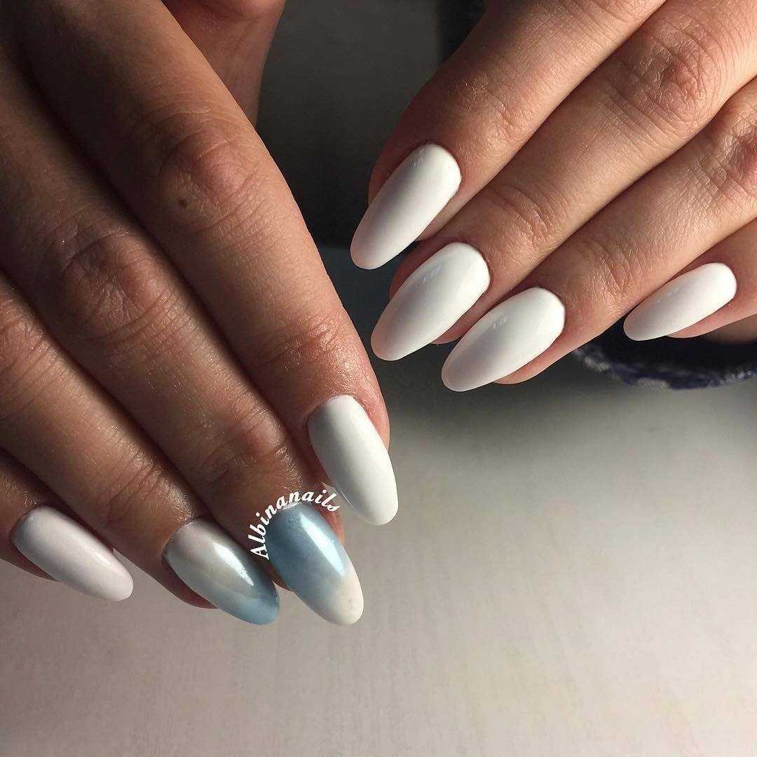 В повседневной жизни многие предпочитают нейтральные цвета. Белый — символ чистоты, лаконичности и изысканности. Женственные белые ногти миндальной формы — сами по себе являются украшением женщины. Такой маникюр не перегружает руки. Его обладательница может не ограничивать себя в украшениях. Конечно, при условии, что выбран лаконичный дизайн — матовое покрытие или глянцевое без украшений, малоприметный градиент, выделение одного пальца на руке.