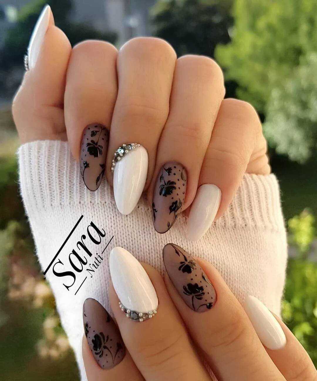 Одновременно белый — прекрасная база для воплощения самых разных идей. Он может адаптировать к любому образу блестки, стразы, камифубуки, втирку или наклейки.
