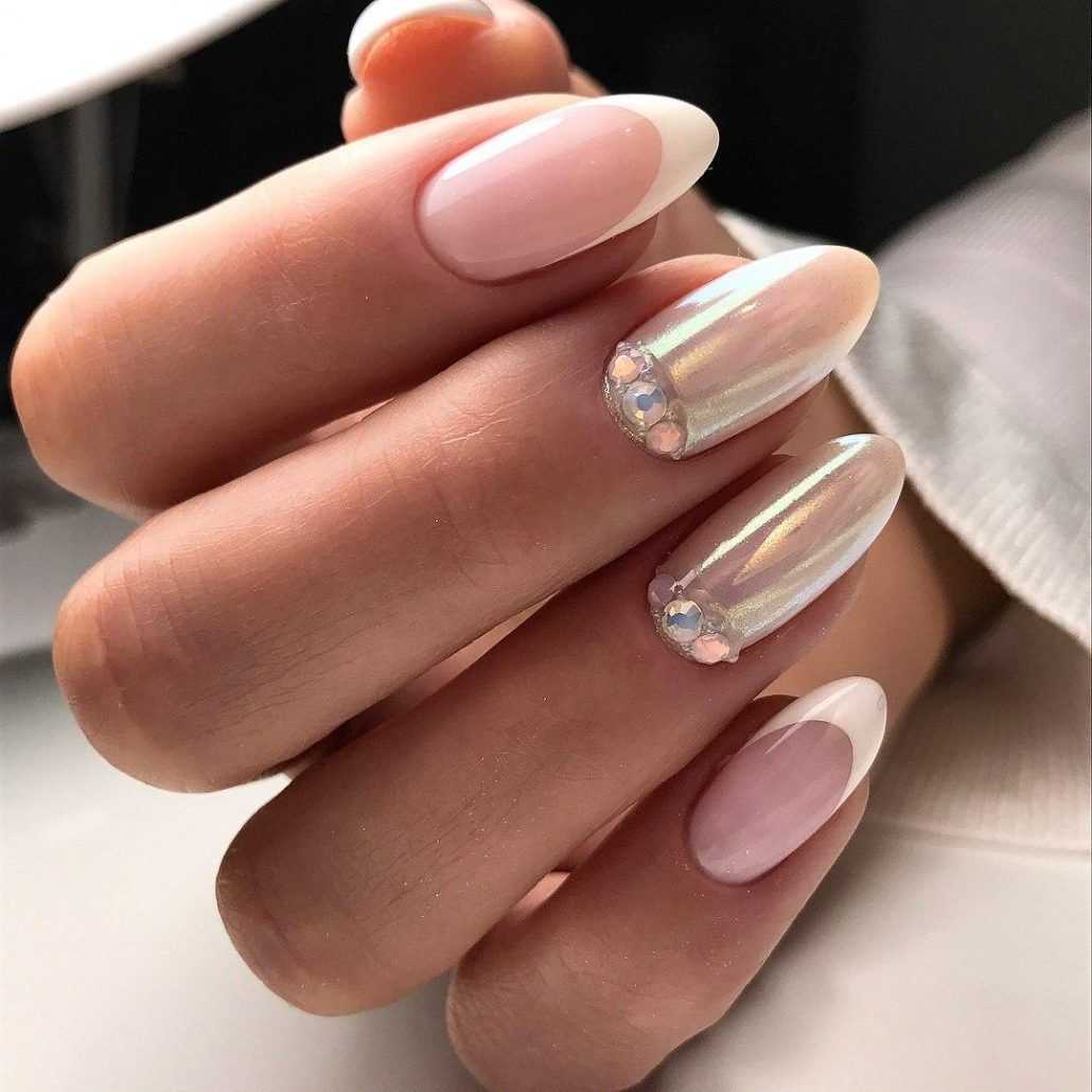 Создать невероятно сказочный и завораживающий эффект поможет протирание жемчуга актуальнее несколько сезонов подряд. Их популярность связана с тем, что благодаря особым микрочастицам в его составе происходит преломление света, из-за чего на ногтях появляются волшебные переливы.