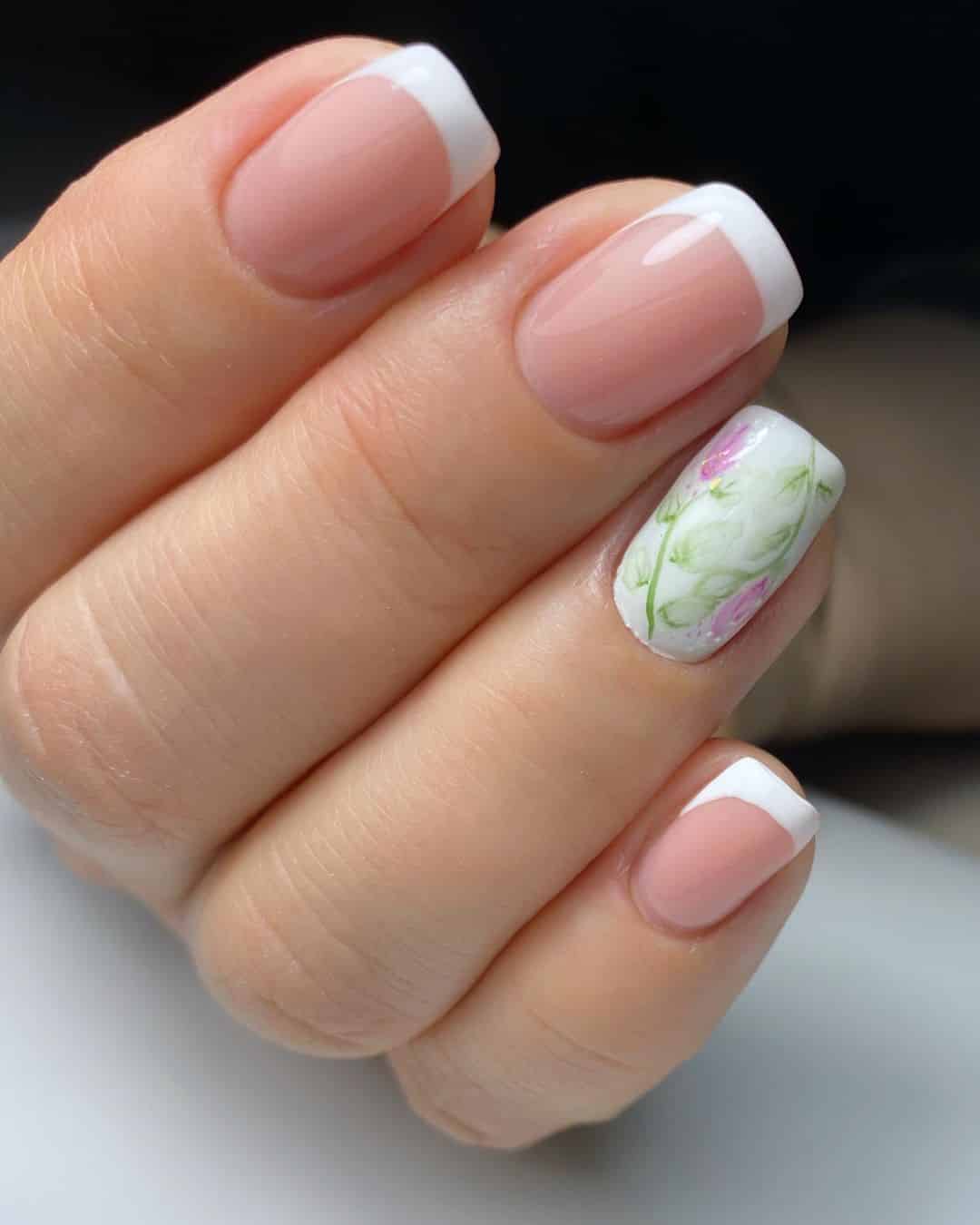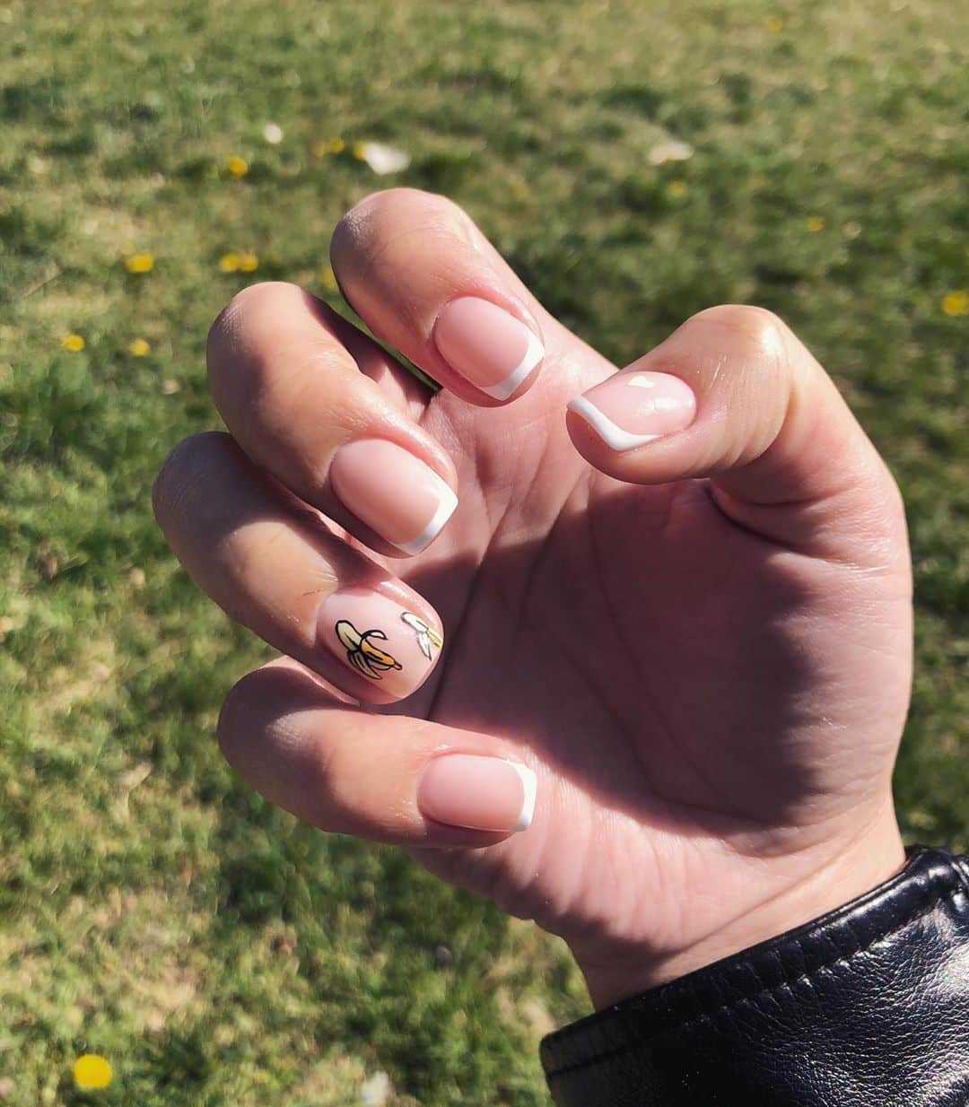 На короткую длину квадрата не стоит выбирать слишком перегруженные дизайны, ведь ноготки смотрятся нежно и даже немного невинно. Короткие ноготки хорошо сочетаются с классическим френчем.