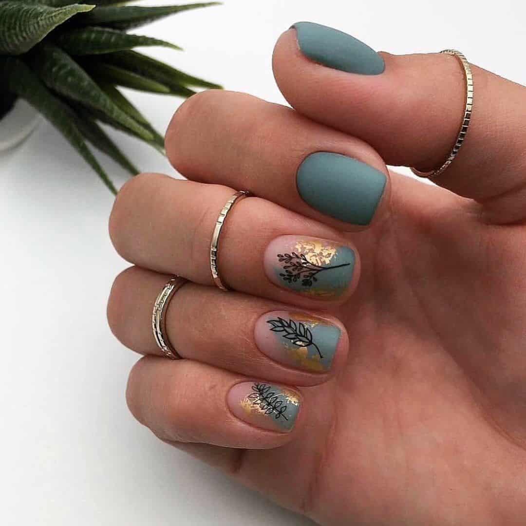 Любым матовым оттенком украшают ноготки, на которых планируется создание какого-либо дизайна. Мастера маникюра давно заметили, что так прорисовка смотрится более детально и акцентируется.