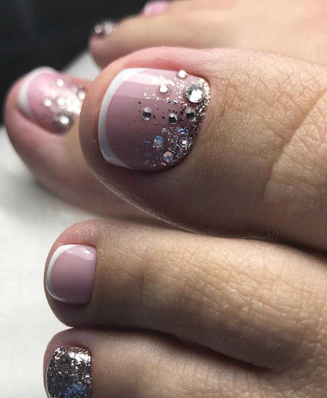 Красивый и модный педикюр также важен, как и аккуратный маникюр. Регулярная обработка ног обеспечит аккуратный вид коже стоп и ногтям. Педикюр со стразами на любых ногтях, бесспорно выглядит презентабельно. Красота ваших ножек заключается в лаконичности