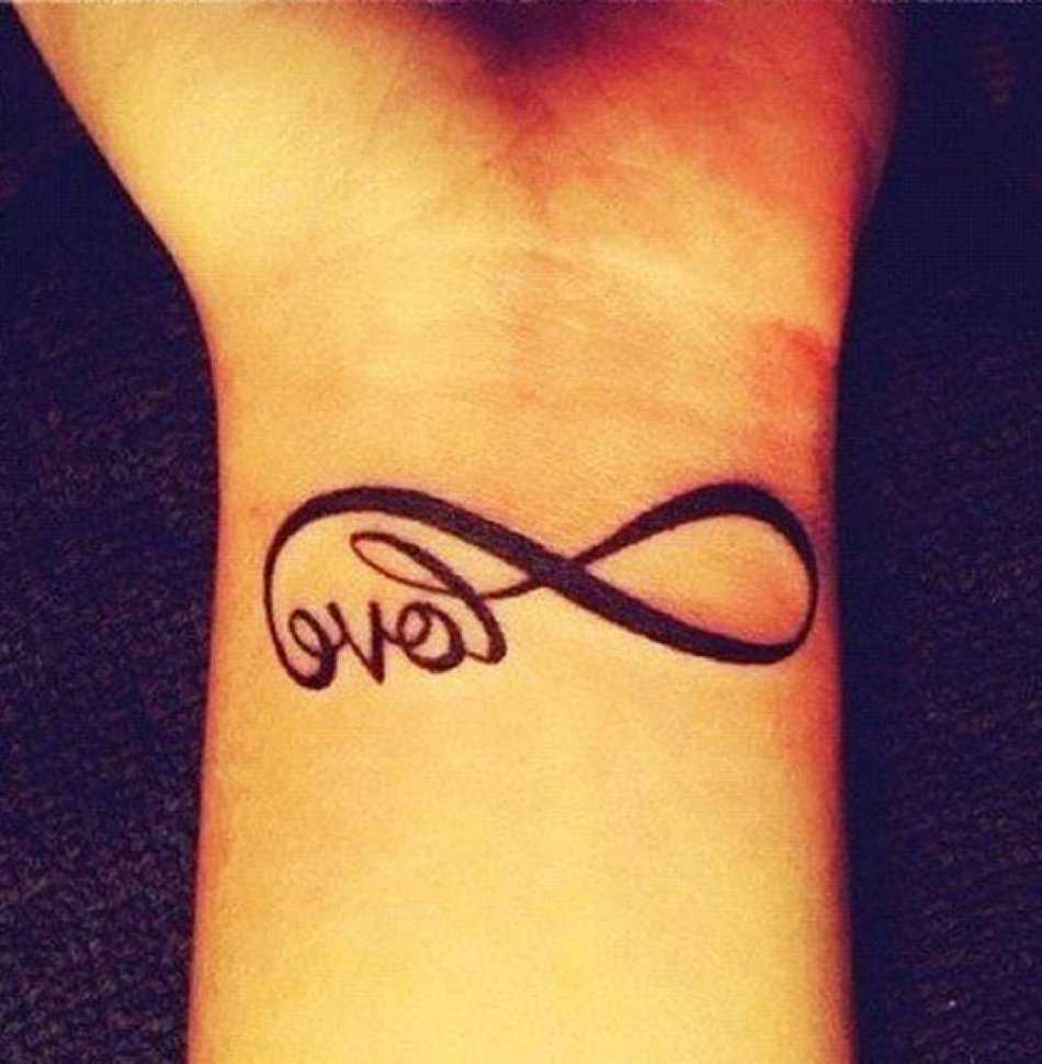 На предплечье может располагаться длинная тату в виде надписи![]()