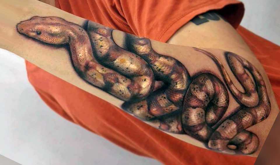 Эскизы со змеями могут быть довольно разными. Одни будут значить вспыльчивость, токсичность и агрессивность носителя. Другие – наоборот характеризовать владельца как серого кардинала.