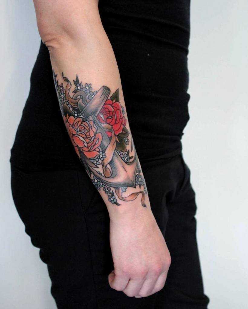 Изображение якоря олицетворяет непоколебимость жизненных взглядов, верность сложившимся традициям и преданность. Якорь на протяжении веков часто украшал тела моряков, которые в дальних странствиях оставались преданными своей семье и дому. Говоря о смысловом значении тату с изображением якоря, следует отметить что он является символом надежды, спасения, удачи и верности. Многие, чтобы не сбиться с выбранного пути, делают наколку в виде якоря.