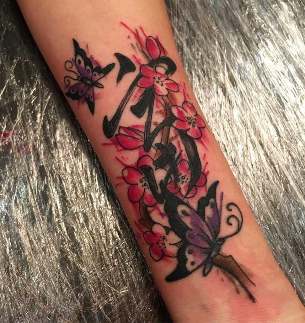 Одиночные иероглифы, нанесенные на область плеча, в некоторых случаях могут таить в себе более глубокий смысл, нежели длинная надпись. Иногда из них могут составлять целые фразы. Подобные татуировки, девушка может комбинировать с мелкими рисунками – звездочками, сердечками, цветами, кружевом и т. д.