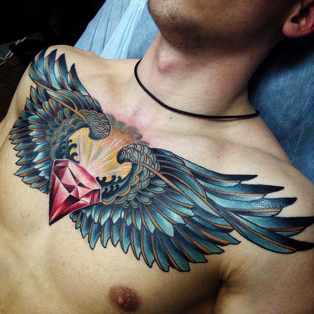 Бриллиант – это символ неподкупности, чистоты, силы и верности собственным идеалам. Тату в большей степени создают цветным в технике «Олд скул», «Нью скул» или «Акварель».