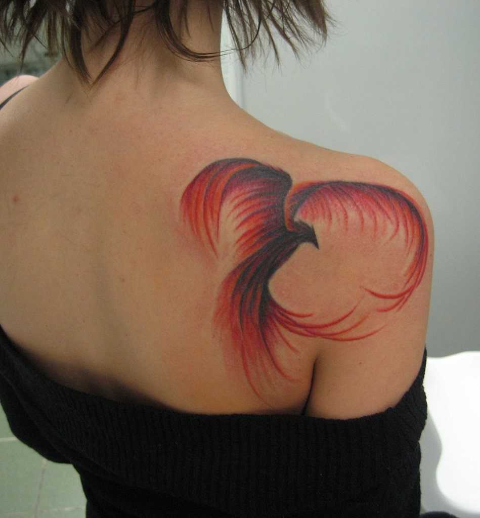 Если на обеих лопатках расположены крылья ангела, это обозначает, что девушка невинна и духовно чиста. В случае, когда на одном из перьев указано имя человека или его инициалы, то это напоминание о любимом, которого уже нет в живых, но о котором помнят и хранят ему верность.