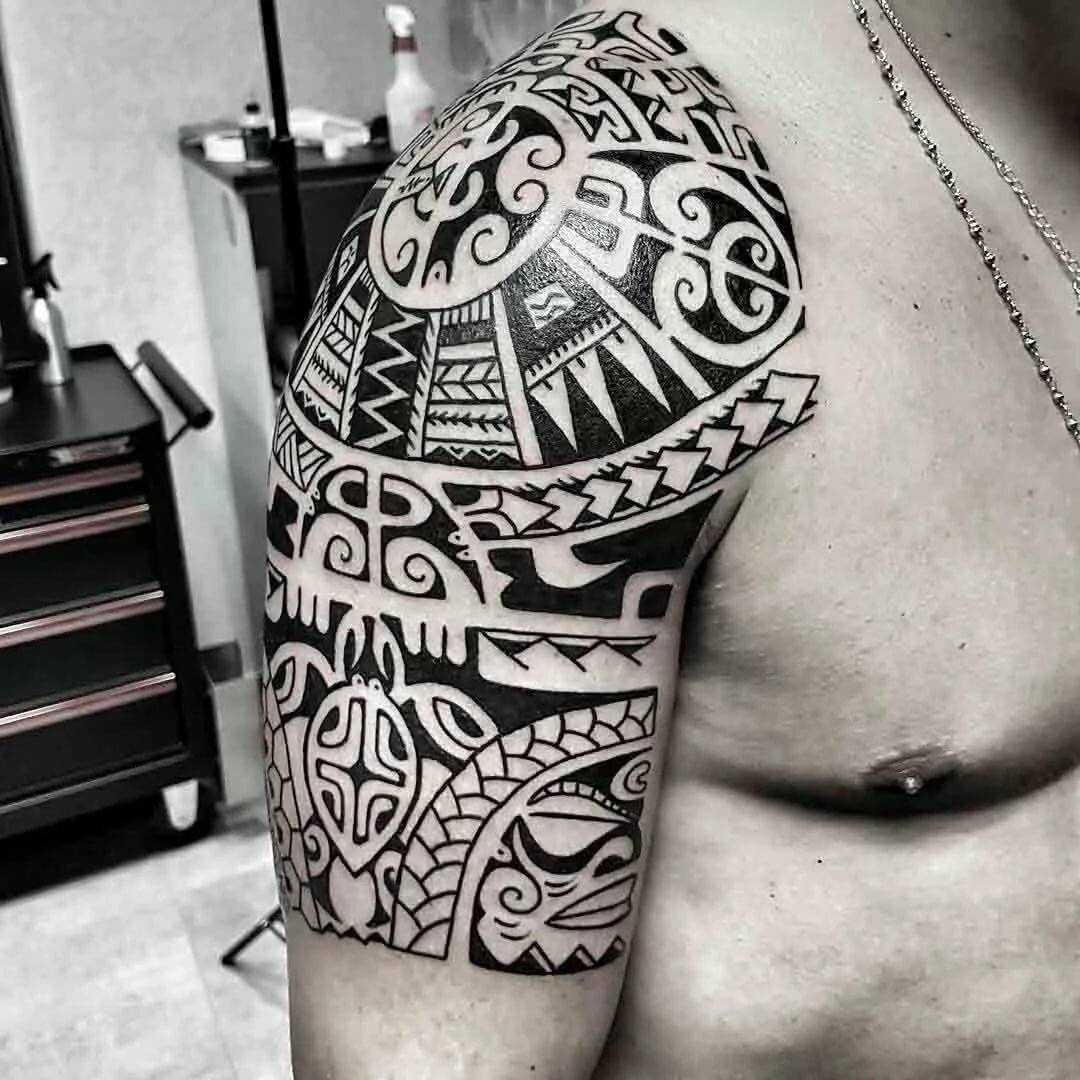 Так называемые татуировки Маори, берут своё начало от одноимённого племени, живущего на островах Тихого океана, и относятся к полинезийскому стилю. Подобные рисунки содержат оригинальное сочетание плавных линий и геометрических фигур, в большинстве которых круги и овалы. Узоры могут самостоятельно украшать участки тела, а могут дополнять другие изображения. Для маорийцев – нательные рисунки несут в себе глубокий смысл, являются основополагающей их культуры и значимой деталью, которая поддерживает их связь с потусторонним миром. Для любителей боди-арта подобные узоры носят исключительно декоративный характер.