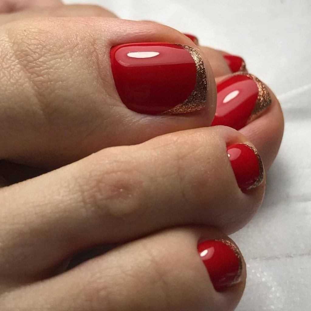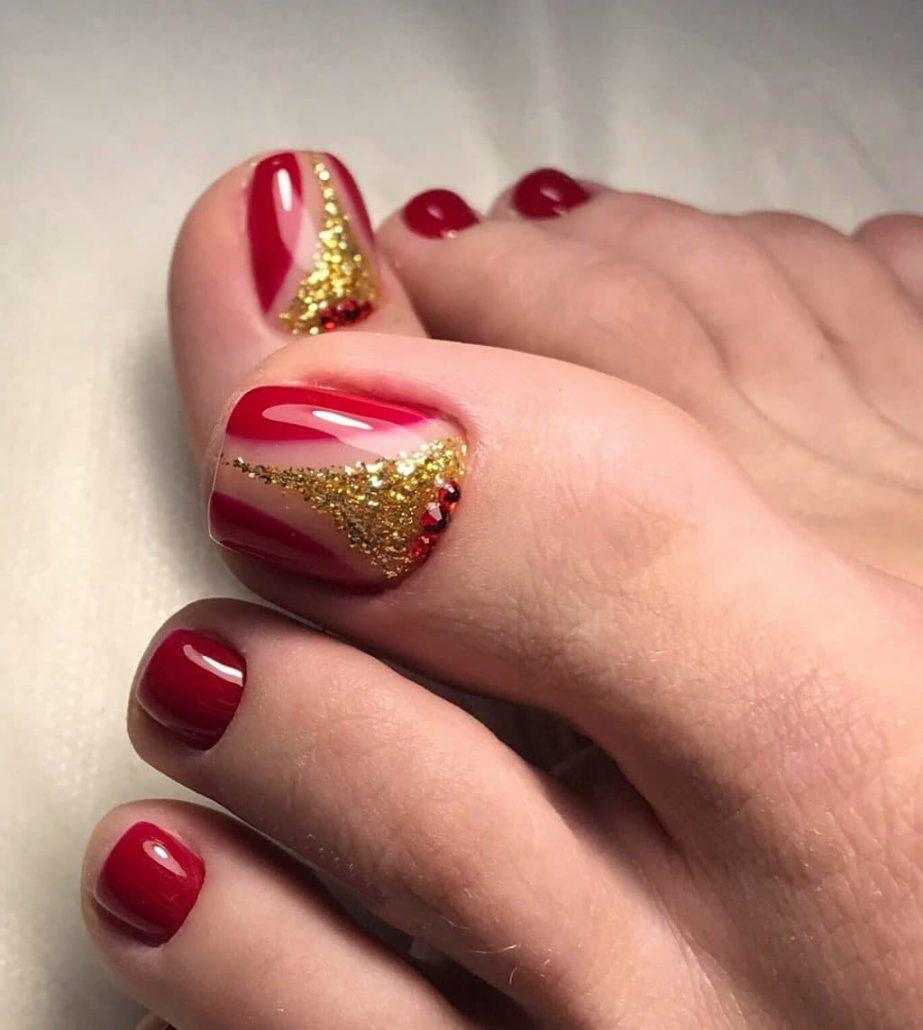 #1 Красно-золотой педикюр: изысканные идеи на каждый день