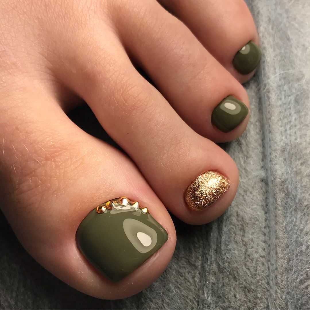 На фото представлены различные варианты золотого педикюра, придающего ножкам ухоженный вид.